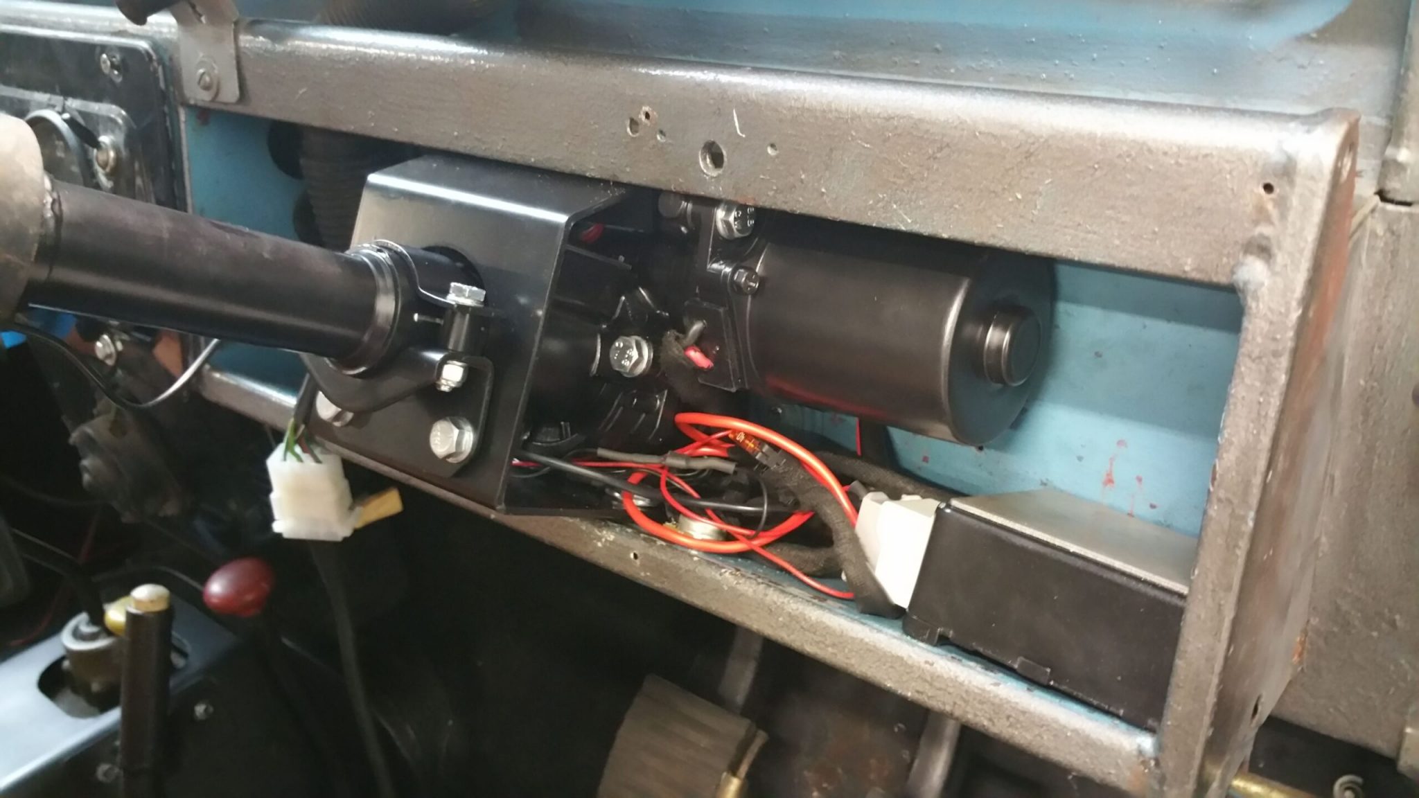 | Note | EZ Powersteering levert een nieuwe stuurkolom met geïntegreerde elektrische stuurbekrachtiging. Omdat u auto een eendelige stuurkolom (*) heeft betreft dit alleen het bovenste deel van de stuurkolom welke zich onder het dashboard bevindt. De set wordt geleverd met een adapter op maat om een veilige verbinding met de originele stuurkolom te maken. * = eendelig betekend dat de stuur as uit een deel betstaat en rechtsreeks is verbonden met het stuurhuis. |