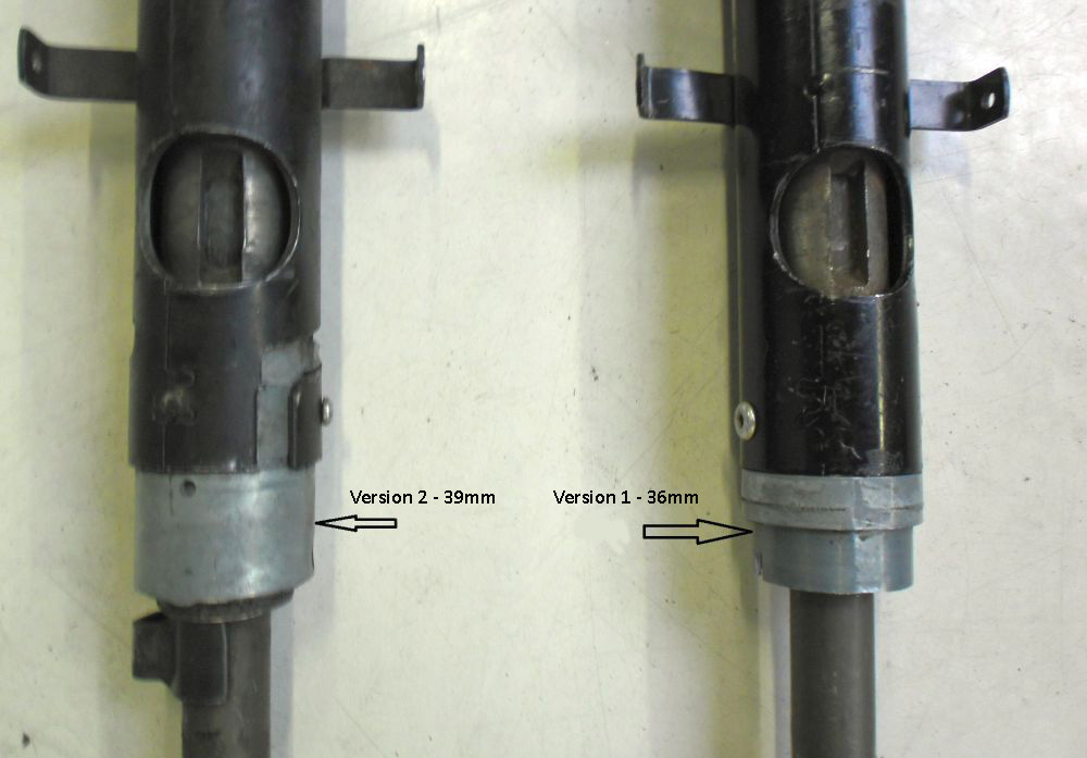 De MG B S3 versie 1 heeft een totale as lengte van 720 mm, een totale buislengte van 585 mm en een buisdiameter van 36 mm aan de bovenkant (stuurwielzijde).